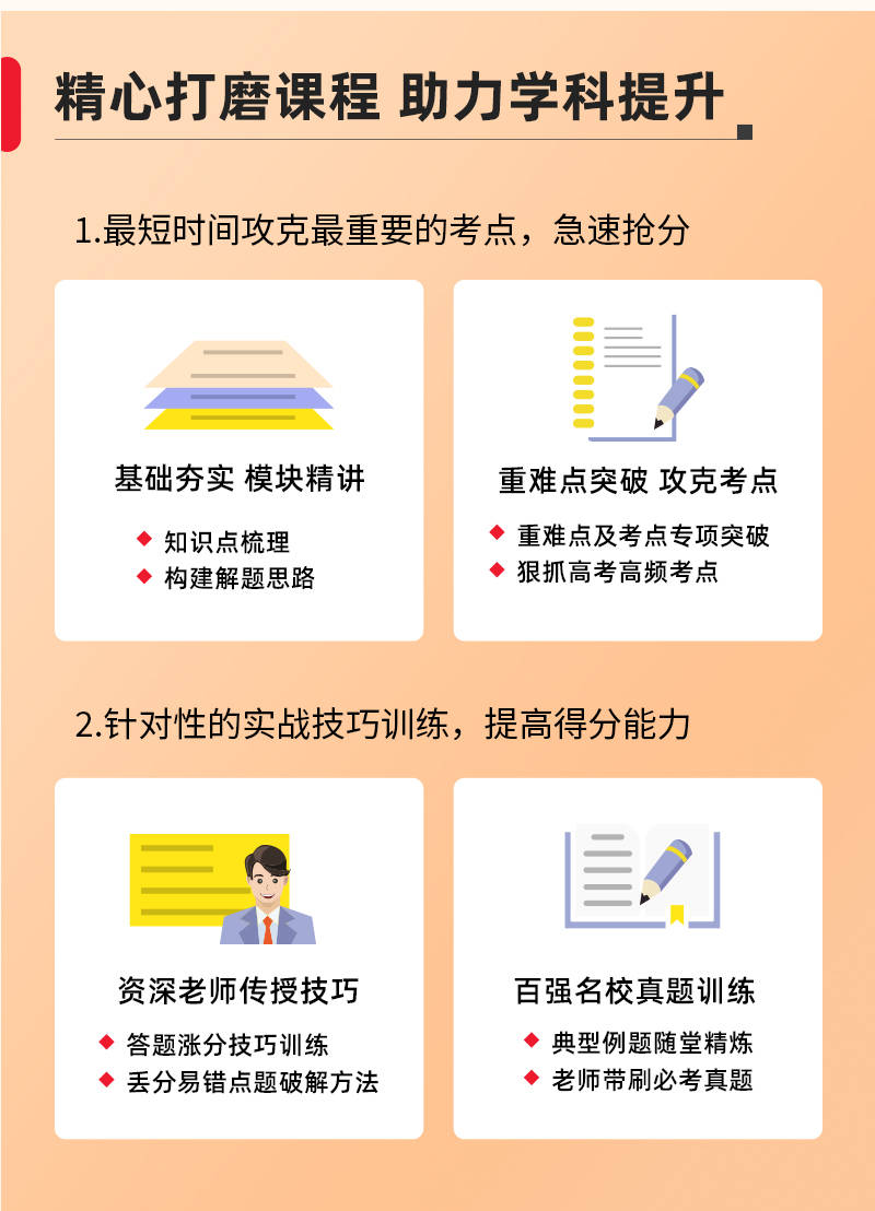 师资:学校拥有一支实力雄厚的师资与教研团队,核心成员均来自成都市多所重点高中的资深教师。这些老师不仅具备丰富的高考教学经验和深厚的学科专业素养,还曾多次参与高考命题研究和备考指导工作,对高考动向和命题规律有着精准的把握。 科学的教学模式:学校摒弃了传统大班授课的局限性,创新性地采用小班化教学与分层式教学体系相结合的方式。每个班级人数严格控制在15人以内,确保教师能够全面掌握每位学生的学习进度、知识薄弱点以及思想动态,实现因材施教。同时,学校还提供一对一个性化辅导服务,从日常学习习惯养成到薄弱环节突破,再到应试技巧训练、心理疏导和营养膳食指导,全程为学生保驾护航。 完善的课程体系:高三冲刺集训课程聚焦高考核心考点,以精准提分、能力进阶为核心目标,结合学生认知规律与高考命题趋势,构建基础夯实—专题突破—冲刺拔高三阶教学体系。通过分层教学适配不同基础学生需求,帮助学生高效掌握知识体系、解题方法与应试技巧,实现从知识输入到能力输出的转化。收费合理,性价比高
