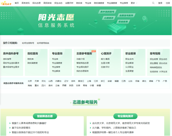 教育部推荐考生使用“阳光高考”平台旗下的免费高考志愿填报信息服务系统 “阳光志愿”。该系统整合全国高校历年录取权威数据,提供智能筛选志愿等七项核心功能。2025年高考考生可免费使用该服务进行本专科普通批次的志愿筛选。考生可依据高考成绩、位次,参考历年录取情况、院校专业满意度、就业状况追踪等多维数据,并结合个人心理测评结果,进行个性化志愿筛选。