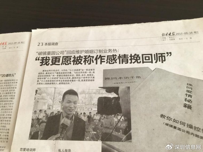 破镜重圆公司导师团队于2010年由情感挽回行业创始人康纳开始组建,随着团队的扩大,众多专业人士如情感问题专家、挽回爱情师、情感咨询师、婚姻咨询师、心理咨询师,挽回爱情顾问等等纷纷加入。破镜重圆情感挽回机构成立至今已成功帮助超过10万人挽回感情,成功率口碑一直保持在92%以上。这也是破镜重圆公司长期居于国内十大情感咨询公司排名第一的原因之一。作为业内情感咨询正规机构,破镜重圆公司的导师团队曾多次受邀担任央视情感专家、多次被主流媒体所报道,如《北京晚报》、《深圳晚报》等。