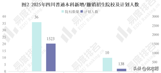 相比去年,今年新增36所高校在四川招生,新增院校的招生计划人数达到1523人。撤销招生计划的院校有10所,这10所高校去年的招生计划138人。
