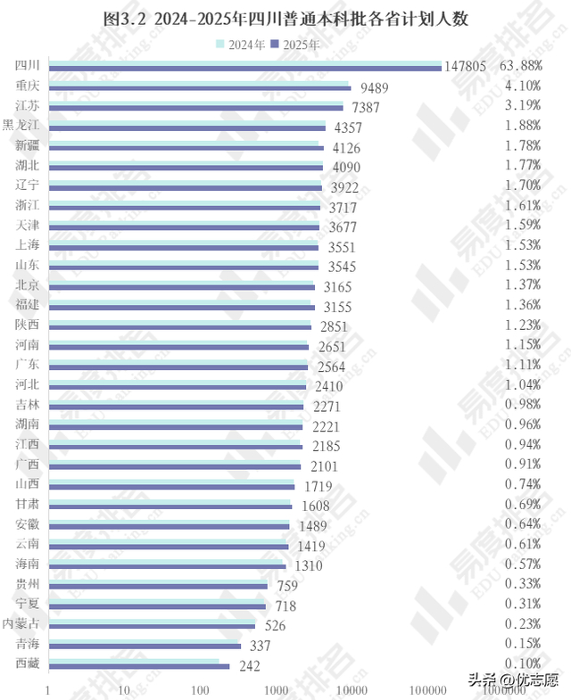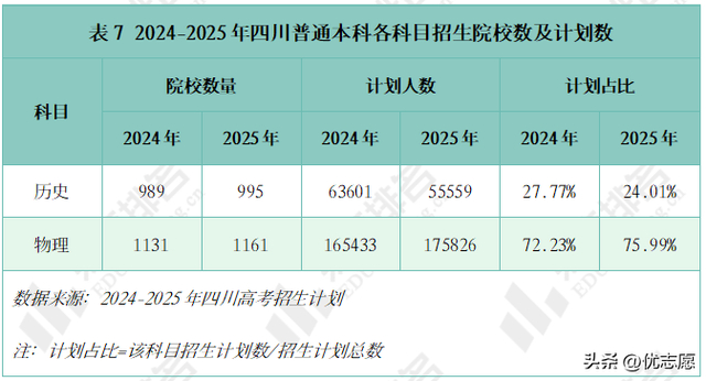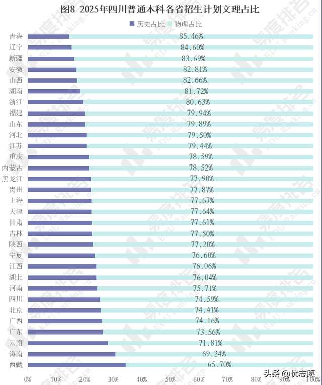 数据来源:2025年四川高考招生计划注:1.仅统计本科普通批次招生计划;占比=该省份该科目计划人数/该省计划总人数
