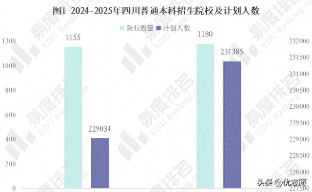 2025年高考在四川本科普通批招生的高校达到1180所,较去年增加25所。计划招生人数超过23万人,较去年增加2351人,计划增幅为1%。