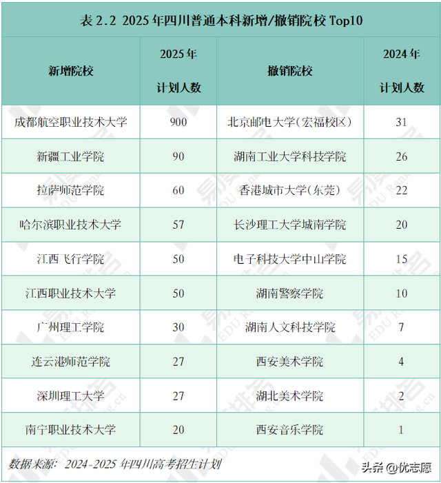 今年新增院校中成都航空职业技术大学计划招生人数最多,达到900人,该校在今年升格为本科院校。