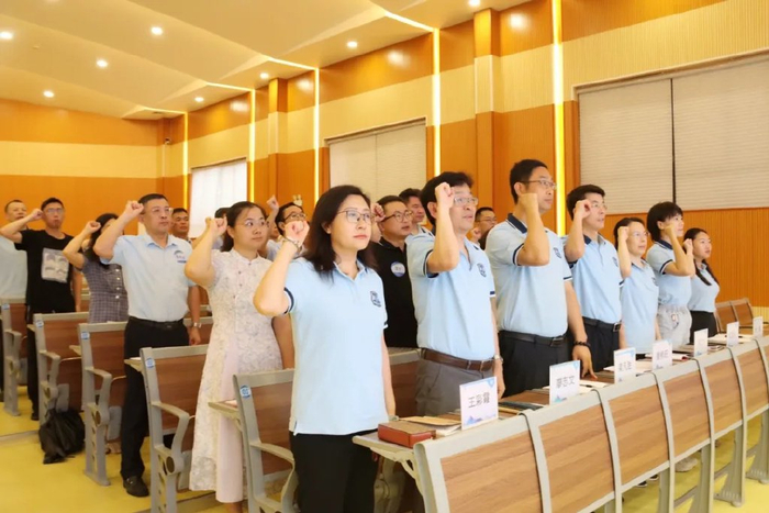 在集训的第一天上午,全体高三教师在王彩霞总校长、廖志文校长、梁凡胜校长、唐根旺校长的带领下,庄严宣誓,表达了他们对备考的坚定决心。这一铮铮誓言,不仅标志着高三新篇章的开启,更体现了教师们肩负的神圣使命——培养国家栋梁、塑造未来精英。