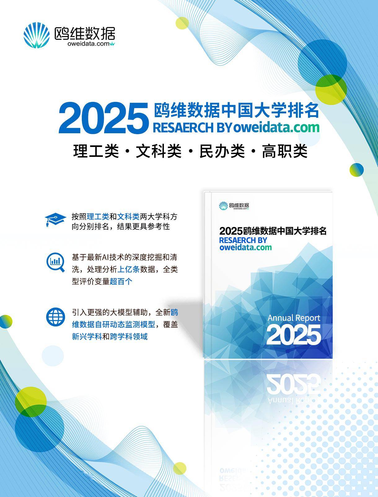就在上个月,业内知名大数据机构——鸥维数据重磅发布了最新的【2025中国大学排名】。鉴于这套大学排名是大数据专业研究机构推出的,带来了基于大数据技术的创新评价手段,因此引发不小关注,而鸥维数据大学排名已经成为业内标杆性的高校评价榜单。