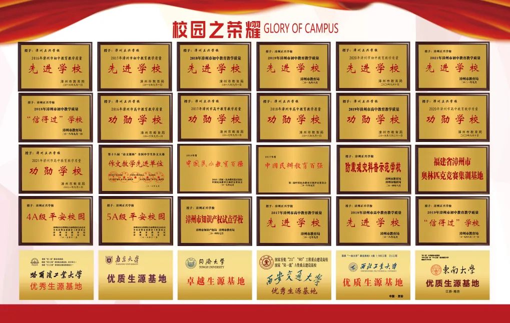 我校多次被评为“教育教学质量功勋学校”、“先进学校”和“中国民办教育百强”,近年高考本科上线95%以上,本一上线65%以上,七年内囊括五个市级状元。