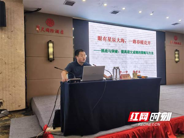 首席名师唐小艳老师分别在零陵区场、冷水滩区场为学员作《轻舟已过万重山,前路漫漫亦灿灿——高中语文拔尖创新人才培养策略及实施》的专题讲座,分享自己在培养拔尖创新人才方面的经验。她将高中语文拔尖创新人才培养分为“六步走”,即筛选培养对象——全面了解学情——建立“一生一案”——制定培养方案——优化复习策略——关注培养细节。以“六步走”为纲要,她毫无保留地分享了自己多年来的相关理论知识和具体实施办法。她以落实教考衔接、研究高考真题、确定方法模式、强化选择题训练、落实默写过关为抓手,守好三轮复习主阵地;以“教材作文体系、作文类别体系、作文板块体系、作文阅卷信息、灵活安排作文、考后作文复写、巧用人工智能”为抓手,守住作文“半壁江山”;以限时训练、升格训练、痛点训练、字体训练、规范训练为抓手,打好高三精细训练硬仗;以课前读、示范展示、日常打卡、不拘一格谈心为抓手,将人才培养融化到每个细节当中。讲座得到了培训学员的一致好评,老师们大呼“讲座条理清晰、内容丰富、方法适用”“干货满满,指导性强”。