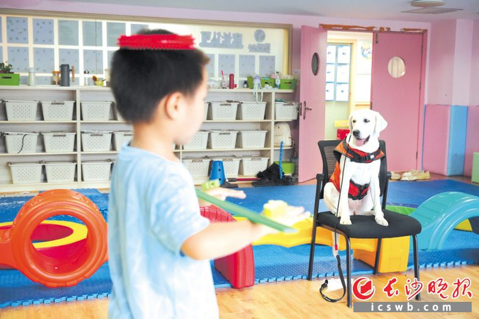 “糖糖来啦,糖糖来啦!”8月14日下午4时,一只白色拉布拉多犬出现在长沙市天心区星语林康复中心大厅,几名小男孩立刻围了过去,奶声奶气的声音里透露着兴奋。
